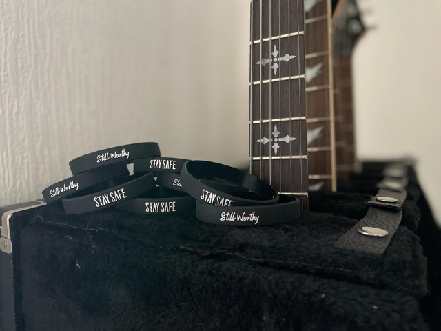 1x rubberised wristband with Band Logo & 'still worthy'